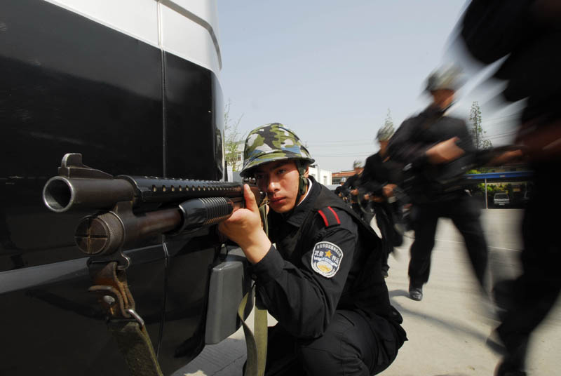 當(dāng)日是五一小長(zhǎng)假的最后一天,我市押運(yùn)隊(duì)伍開展以“反搶劫、反襲擊” 為主要內(nèi)容的反恐實(shí)戰(zhàn)演練,增強(qiáng)武裝押運(yùn)隊(duì)伍快速反應(yīng)和協(xié)同作戰(zhàn)能力,為已開幕的世博會(huì)營(yíng)造一個(gè)良好的治安環(huán)境。