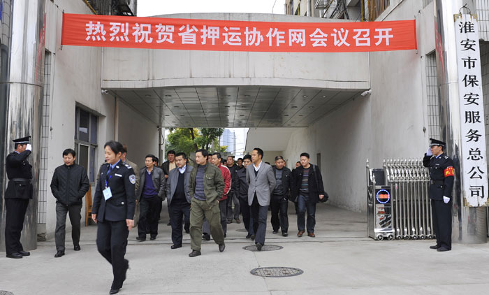 2011年11月30日至12月1日,江蘇省押運(yùn)協(xié)作網(wǎng)第五次會(huì)議在淮安召開,淮安市公安局初曉副局長致歡迎詞,來自南京、無錫、蘇州、鎮(zhèn)江、常州、南通、泰州、揚(yáng)州、徐州、連云港、鹽城、宿遷、淮安等全省十三個(gè)市的保安(押運(yùn))公司總經(jīng)理和分管領(lǐng)導(dǎo)40余人參加了會(huì)議。省公安廳治安局賁志平副局長、省公安廳保安監(jiān)管科錢幼菁科長、淮安市公安局治安支隊(duì)劉硯明政委以及保安監(jiān)管科領(lǐng)導(dǎo)應(yīng)邀出席會(huì)議。