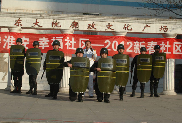 總公司迎春晚會的兩個節(jié)目《少年壯志不言愁》和《保安擒敵表演》應邀參加演出。盡管天氣寒冷,但隊員們不懼嚴寒,精彩的演出博得了社區(qū)數(shù)百居民的陣陣掌聲。保安員走進社區(qū),讓老百姓更加了解淮安保安,向普通百姓展示了淮安保安的豐富的企業(yè)文化。