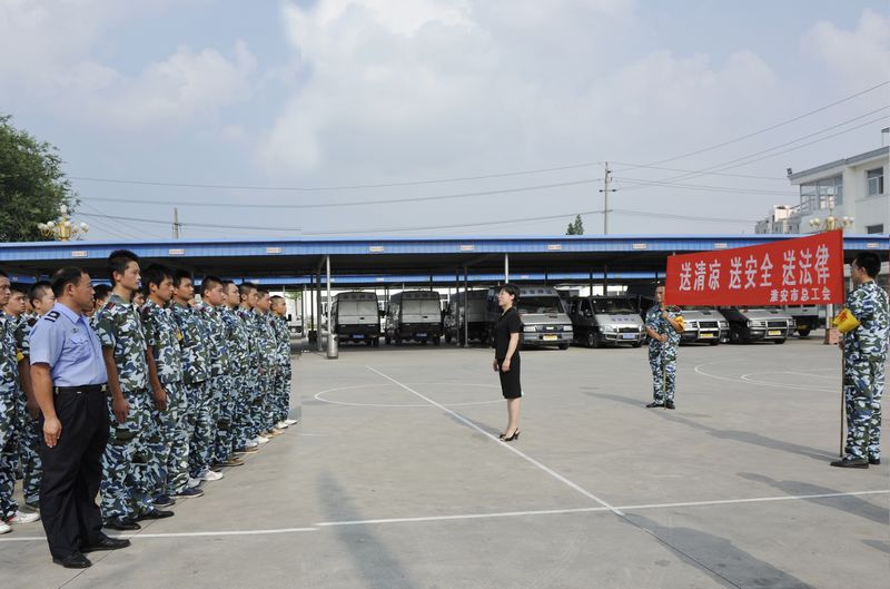 7月28日下午,淮安市總工會領(lǐng)導(dǎo)深入公司訓(xùn)練場,慰問正在酷暑下訓(xùn)練的校園特衛(wèi)人員,并為他們送來了飲料和毛巾等防暑用品,總工會慰問組一行充分肯定了特衛(wèi)人員在加強(qiáng)全市校園安全防范工作中所作出的成績,并勉勵特衛(wèi)人員進(jìn)一步加強(qiáng)訓(xùn)練,努力提高素質(zhì),為打造平安校園作出更大的貢獻(xiàn)。