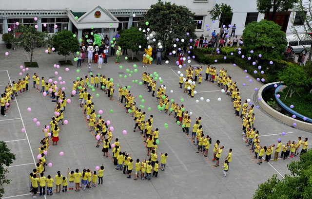 6月3日下午,總公司院內(nèi),400余名小朋友排成2012字樣并放飛氣球,共同歡度剛剛過(guò)去的六一兒童節(jié)。