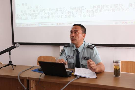 圖為:培訓(xùn)中心主管,于鳴同志正在講解隊列訓(xùn)練科目要求
