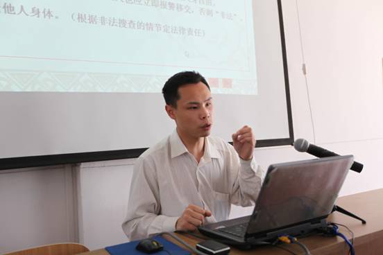 圖為:南湖區(qū)公安分局法制科張警官,正在傳授法律知識。