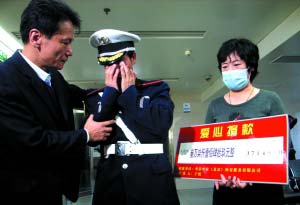 就在記者采訪小悅悅父母的時(shí)候,旁邊的一個(gè)年輕女孩突然往小悅悅母親手中塞進(jìn)100元現(xiàn)金,“給孩子買點(diǎn)東西吃吧。”然后頭也不回地走進(jìn)電梯。