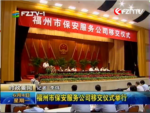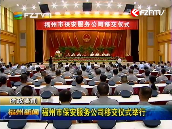 福州市公安局消息 6月4日上午,福州市保安服務(wù)公司交接儀式在市委禮堂舉行。福州市盈瑞投資有限公司正式承接由公安系統(tǒng)剝離出來的福州市保安服務(wù)公司。市委常委、常務(wù)副市長陳大強,市委常委、政法委書記陳為民,省公安廳副廳長、市政府副市長、市公安局局長徐凡新,省公安廳治安管理總隊政委、省保安協(xié)會副會長張德雨,市局黨委委員、副局長鄭雷聲以及市政府相關(guān)部門領(lǐng)導(dǎo)出席現(xiàn)場移交儀式。
