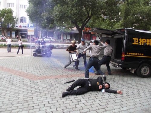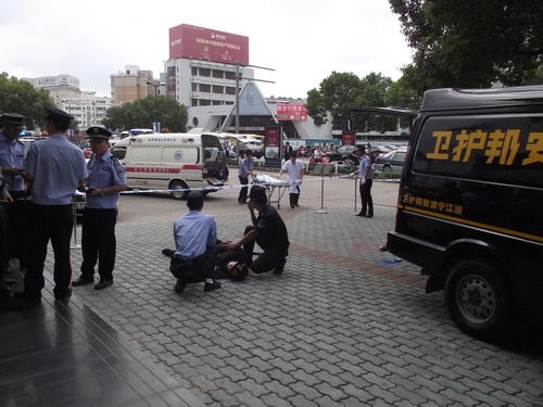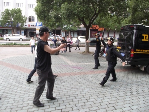 象山縣公安局舉行了反恐怖應急實戰(zhàn)演練,寧波安邦護衛(wèi)有限公司象山大隊參與了配合。演練內(nèi)容為:當運鈔車到達民生銀行網(wǎng)點正卸款箱時,突遇兩名持槍械恐怖分子沖向運鈔車,擊斃兩名押運員后,用煙霧彈實施爆炸,正要奪款箱而逃時銀行兩名保安員沖出網(wǎng)點與恐怖分子搏斗。公安機關(guān)接警后,110指揮中心立即下達指令,迅速調(diào)集武警、巡警、交警、刑警、消防等百余名警力和120急救中心緊急趕赴現(xiàn)場,進行消防滅火和醫(yī)療急救,公安機關(guān)進行現(xiàn)場勘查,并堵截交通要道,最終擒獲恐怖分子,追回款箱??h政府、縣公安局有關(guān)領導到場觀摩了演習。