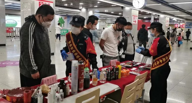 為深入貫徹落實習(xí)近平總書記的總體國家安全觀,落實國家、省級、市級反恐辦關(guān)于“切實增強全民國家安全意識,不斷提高人民群眾維護國家安全能力”為主要內(nèi)容的反恐怖宣傳教育,同時加強對疫情期間進站乘車人員的防護保障措施,保障所有出行乘客的人身及生命財產(chǎn)安全,按照西安軌道交通集團有限公司工作部署安排,結(jié)合“4·15全民國家安全教育日”和掃黑除惡宣傳,貫徹落實分公司決定在全線網(wǎng)范圍開展為期一周的反恐怖普法宣傳教育活動和疫情防控相關(guān)知識宣傳講解,4月15日,西安市保安服務(wù)總公司、西安地鐵運營分公司、公安地鐵分局韋曲南派出所在西安地鐵二號線小寨站,按照運營一中心下發(fā)的“關(guān)于反恐怖普法宣傳教育活動計劃”,開展違禁品展示宣傳專項活動的通知”,聯(lián)合開展“安全出行、共建平安和諧地鐵”,“警民牽手110違禁品宣傳”“2020年新冠疫情防控”等宣傳教育活動。