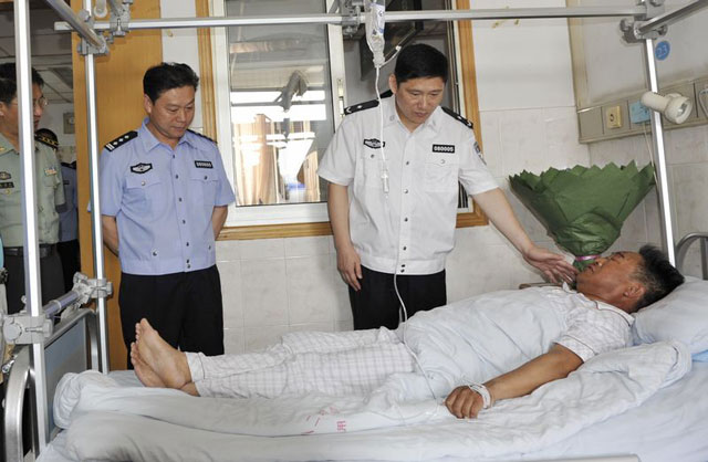 7月30日上午,市公安局徐乾副局長在交巡警支隊蘇必偉支隊長和公司婁伯翱總經(jīng)理等領(lǐng)導(dǎo)的陪同下,到八二醫(yī)院看望慰問了因公負(fù)傷的我公司保安四大隊交通協(xié)管員孫長如,并送上了慰問金。