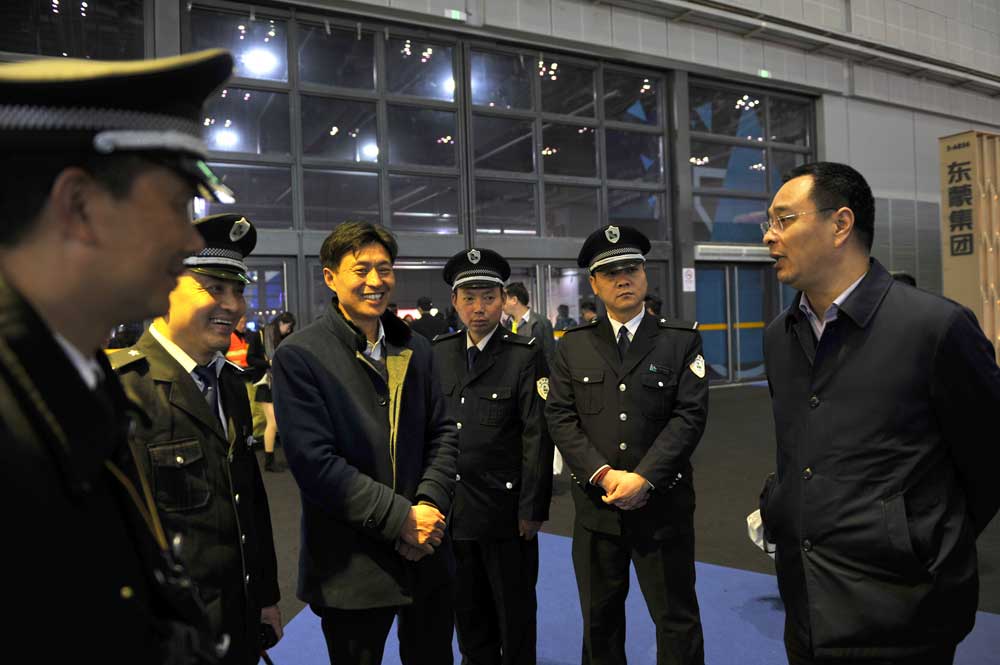 在上海國(guó)家會(huì)展中心,婁伯翱總經(jīng)理實(shí)地查看了隊(duì)伍執(zhí)勤情況,詳細(xì)了解了隊(duì)員工作職責(zé)和工作時(shí)間,聽取了近期工作匯報(bào)。并針對(duì)駐滬隊(duì)伍伙食、班次、休假、交通以及業(yè)務(wù)發(fā)展等工作與客戶單位負(fù)責(zé)人進(jìn)行了深入溝通交流。