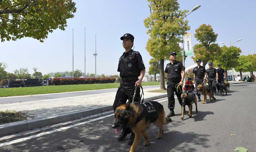 犬防大隊(duì)攜警犬認(rèn)真巡邏