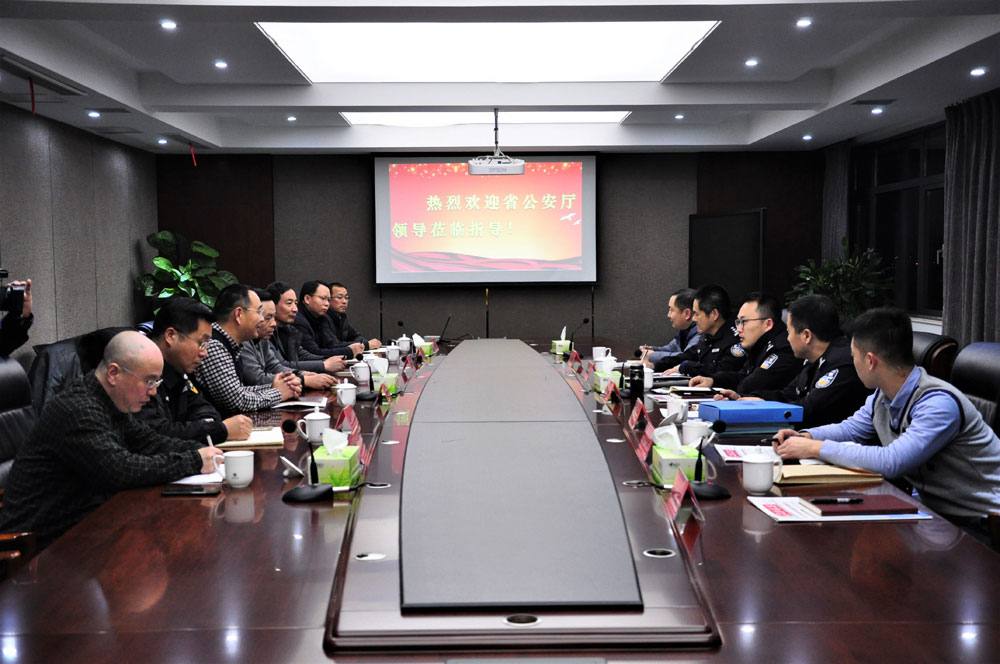 1月21日,江蘇省公安廳治安總隊(duì)保安監(jiān)管科科長(zhǎng)王昕、省保安協(xié)會(huì)辦公室李宇航一行蒞臨總公司,調(diào)研江蘇省保安協(xié)會(huì)第三屆理事會(huì)第三次會(huì)員代表大會(huì)會(huì)議精神貫徹落實(shí)情況,淮安市公安局治安支隊(duì)政委顏志龍、監(jiān)管大隊(duì)長(zhǎng)呂述山陪同調(diào)研??偣究偨?jīng)理婁伯翱、副總經(jīng)理王克、徐文剛和行政中心、人力資源中心、人防中心、押運(yùn)中心和技防分公司等部門負(fù)責(zé)人參與座談交流。