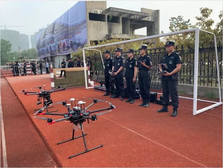 到達(dá)指定區(qū)域后,無(wú)人機(jī)操控員立即進(jìn)行了分工,并對(duì)設(shè)備進(jìn)行連接調(diào)試。早上5時(shí),所有參演人員按照指揮部指令到達(dá)指定位置。7點(diǎn)20分,蘇北跨區(qū)域拉練正式開(kāi)始。負(fù)責(zé)空中航拍的無(wú)人機(jī)操控員迅速將演練現(xiàn)場(chǎng)的實(shí)時(shí)畫(huà)面?zhèn)鬏斨连F(xiàn)場(chǎng)指揮部及省公安廳;演練過(guò)程中,發(fā)現(xiàn)“上訪人員”用民用無(wú)人機(jī)對(duì)現(xiàn)場(chǎng)進(jìn)行拍攝和干擾,無(wú)人機(jī)反制小組迅速做出反應(yīng),操控?zé)o人機(jī)反制設(shè)備對(duì)民用無(wú)人機(jī)進(jìn)行管制和驅(qū)離;隨著“上訪人員”人數(shù)的逐漸增多,現(xiàn)場(chǎng)指揮員要求飛控隊(duì)操控?zé)o人機(jī)載喇叭進(jìn)行高空喊話和宣傳相關(guān)的法律法規(guī),同時(shí)對(duì)“上訪群眾”進(jìn)行疏導(dǎo);由于現(xiàn)場(chǎng)部分“上訪人員”情緒過(guò)激,出現(xiàn)燒、搶、打、砸等惡劣狀況發(fā)生,態(tài)勢(shì)愈發(fā)嚴(yán)重,指揮部立即下達(dá)指令,無(wú)人機(jī)載著煙霧彈、催淚彈等升空,對(duì)人員密集的區(qū)域進(jìn)行投彈,成功驅(qū)散了現(xiàn)場(chǎng)的打砸人員。
