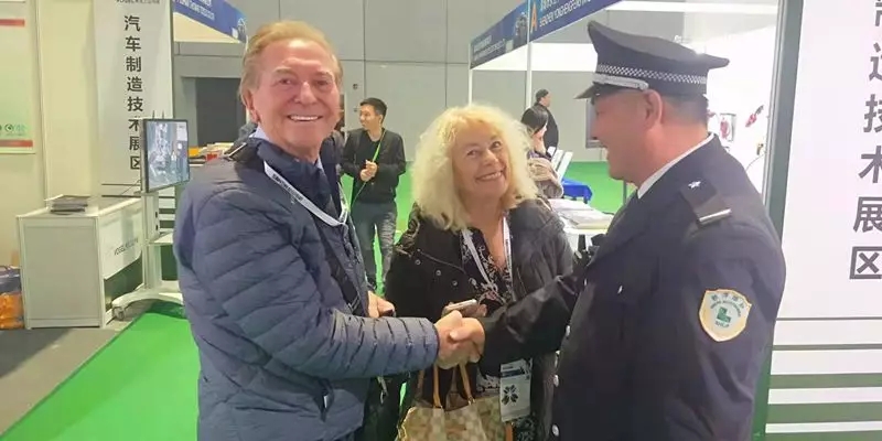 12月3日開館當(dāng)天,隊(duì)員陳得彬在6.1號(hào)館3門巡查時(shí)拾到一部手機(jī),經(jīng)過(guò)尋找手機(jī)是兩位英國(guó)夫婦的,外國(guó)友人對(duì)陳得彬非常感謝,希望拍照紀(jì)念,臉上流露出滿意笑容。